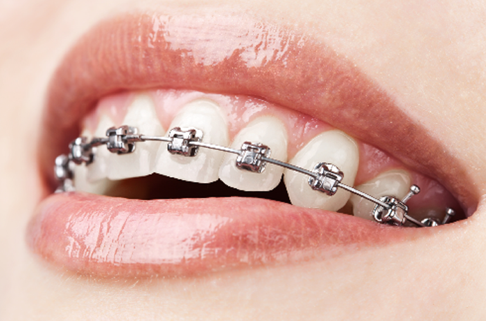 传统金属矫正采用专用的黏结剂把金属或其他材料固定在牙齿表面,用于容纳固定正畸钢丝,传递矫治力到牙齿,从而达到牙齿矫正的目的,一般采用金属托槽矫治器、自锁托槽矫治器。